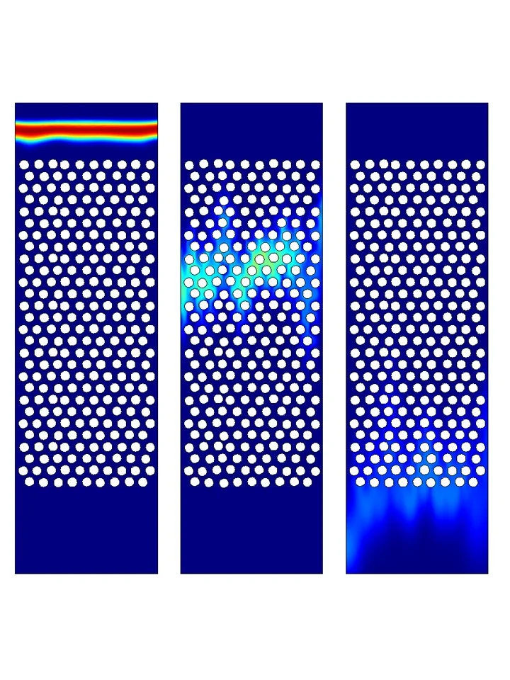 View and download videos of UHPLC simulations of an ideal tube, conventional packed bed, pillar array and Imagine TF’s layered structures