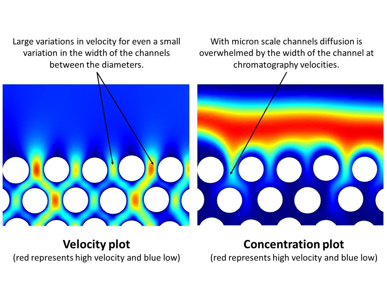 These images show the diffusion of an ideal channel with only longitudinal diffusion at three intervals. This column has no functional surfaces. It only shows “idea” diffusion in a channel.